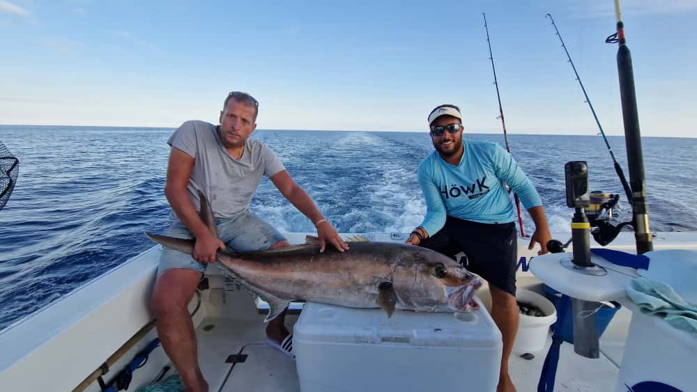 Schönes Wochenende, Angler. Wir haben den Samstag mit einem Hochseeangelausflug mit unserem Angler und Freund Chris auf der Suche nach riesigen Bernsteinmakrelen begonnen. Im Laufe des Vormittags hatten wir mehrere Bisse, aber wir haben es nicht geschafft, 2/2 davon an den Haken zu bekommen. Weiter ging es mit mehreren Bissen von 1/2 kg schweren Bernsteinmakrelen und wir haben 4/4 gefangen. Weiter ging es mit mehreren Red Snappern und am Ende des Tages kam es zum großen Kampf mit einer 40/45 kg schweren Bernsteinmakrelen. Schließlich hatte unser Freund ihn, ein harter und schöner Kampf. Herzlichen Glückwunsch und herzlichen Glückwunsch, Gott sei Dank für diese schönen Tage, immer vorwärts, Angler.