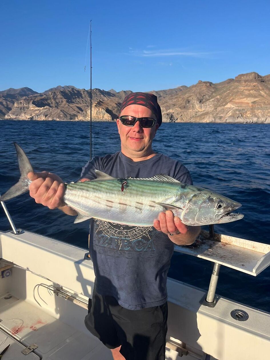Ja, i dag var en dag med mye aktivitet og veldig gode fangster, vi startet morgenen med mange biter av atlantisk tunfisk, ganske store 4/5, vi fortsatte med flere biter av barracudaer 3/5 og flere røde sappers, i ettermiddag fortsatte vi med flere